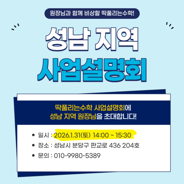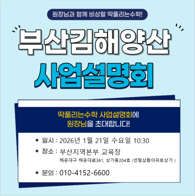 가맹희망지역 원장님 비상 딱풀리는수학과 함께 성장해요^^